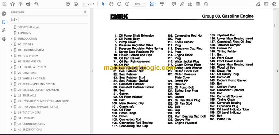 Clark GPX35, GPX40, GPX50E Forklift Index: