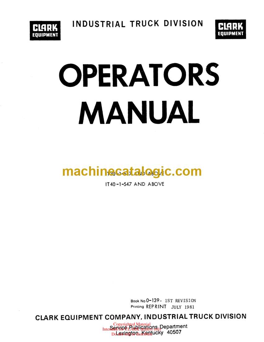 Clark IT30-1-547, IT40-1-547 Forklift Operators Manual (O-139)