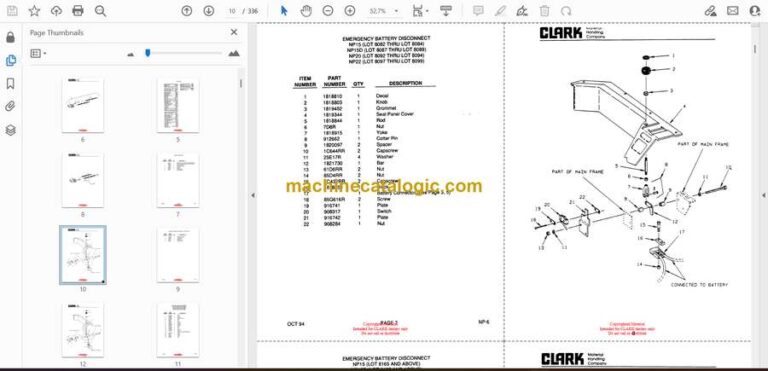 These Clark NP15, NP15D, NP20, and NP22 electric forklifts live indoors most of the time—warehouses, loading docks, tight aisles—doing steady pallet and product handling. This parts manual is what I’d keep open when I’m trying to match what I see on the truck to the correct Clark part number. Say you’ve got a sloppy accelerator pedal or a damaged steering axle end: this book lets you confirm which style of linkage or axle assembly you’re actually looking at before you order anything.
