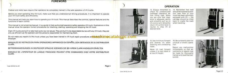 Clark NP15, NP20 Narrow Aisle Truck Operators Manual (OM-535)