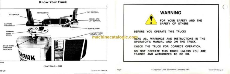 Clark NS, NST, NSP 20 thru 40 and RP, RPF 40 thru 60 Forklift Operators Manual (OI-327)