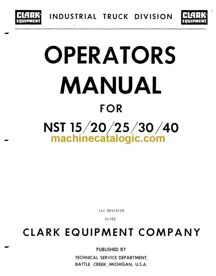 Clark NST15, NST20, NST25, NST30, NST40 Forklift Operators Manual (O-165)