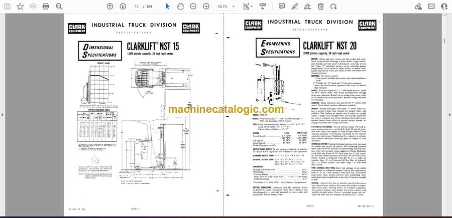 Clark NST15, NST20, NST25, NST30, NST40 Forklift Index: