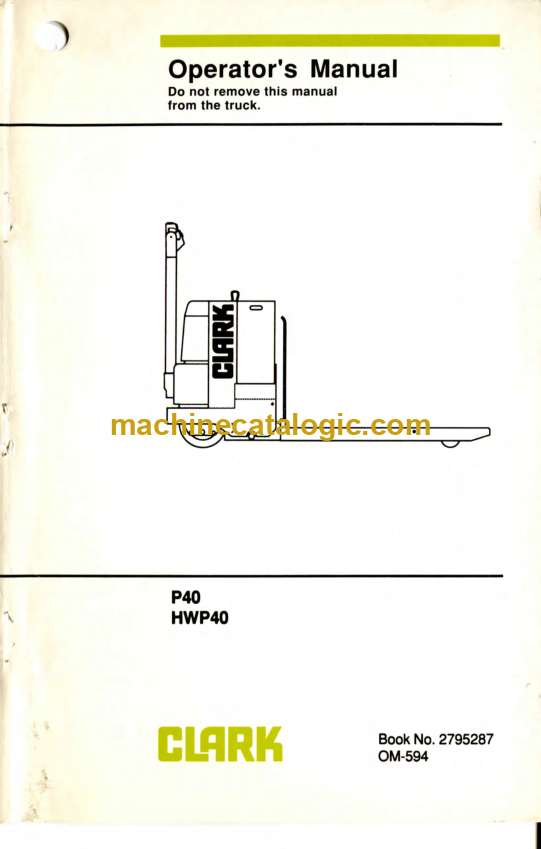 Clark P40, HWP40 Tow Tractor Operators Manual (OM-594)