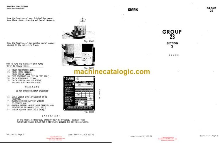 These Clark P465 and PF40 electric trucks usually spend their lives loading pallets in warehouses, docks, and tight indoor aisles. This Planned Maintenance and Adjustment Procedures Manual helps you stay ahead of breakdowns by laying out when and how to service the truck, and how to fine‑tune key settings. If, for example, you’ve got a unit that’s losing drive power halfway through a shift, this is the book you use to trace whether it’s a maintenance issue—like neglected lubrication or a misadjusted component—before you start throwing parts at it.