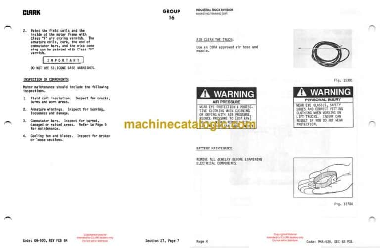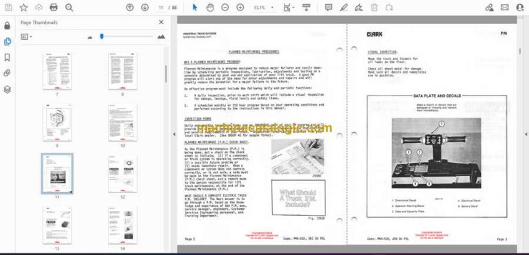 Clark PT5, PT7 Forklift Planned Maintenance and Adjustment Procedures Manual (PMA528)