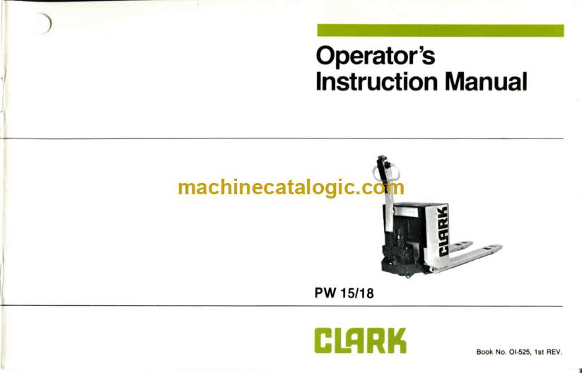 Clark PW15, PW18 Pallet Truck Operators Manual (OI-525)
