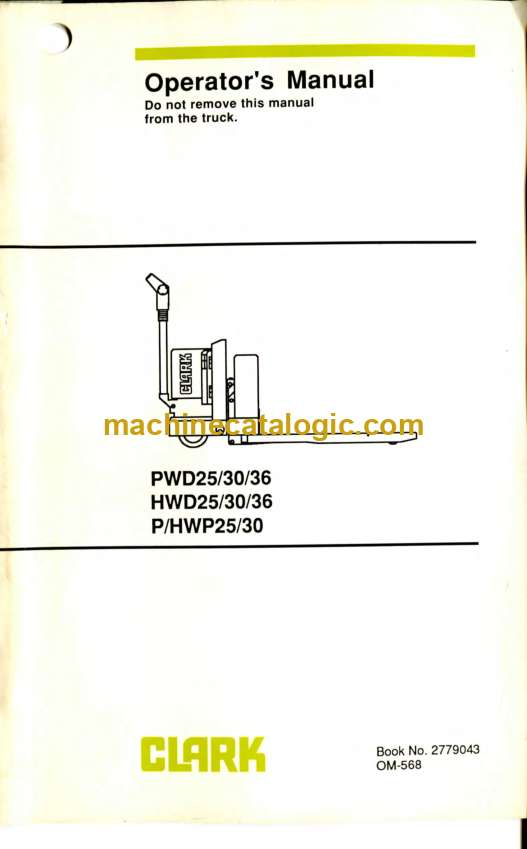 Clark PWD25, PWD30, PWD36, HWD25, HWD30, HWD36, P-HWP25, P-HWP30 Forklift Operators Manual (OM-568)