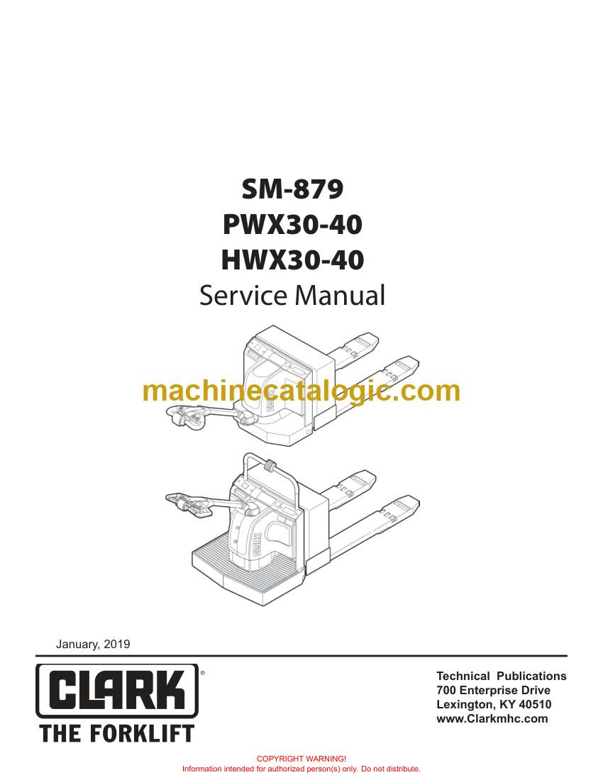 Clark PWX30-40, HWX30-40 Pallet Truck Service Manual (SM879)