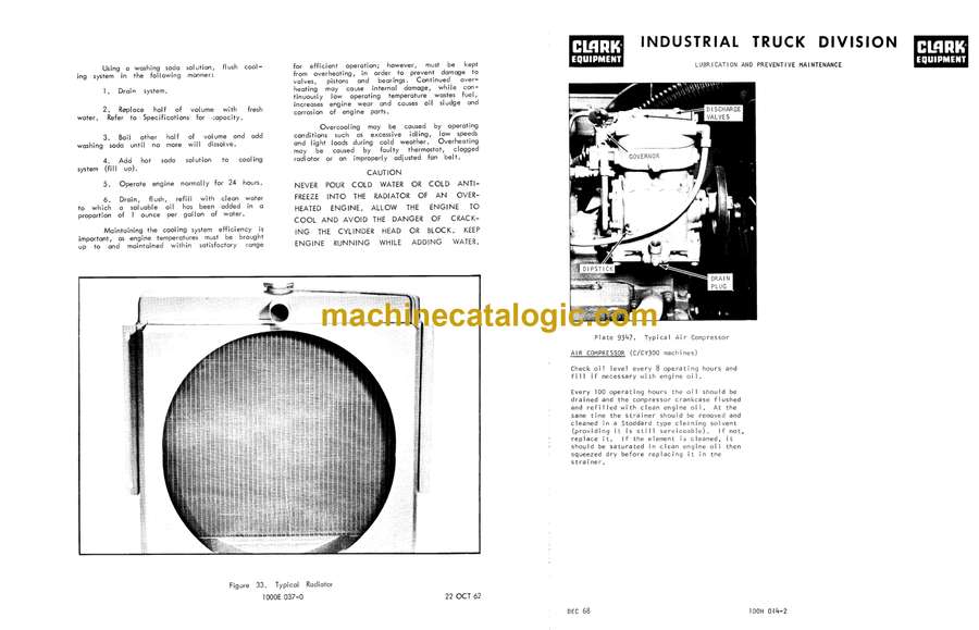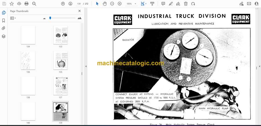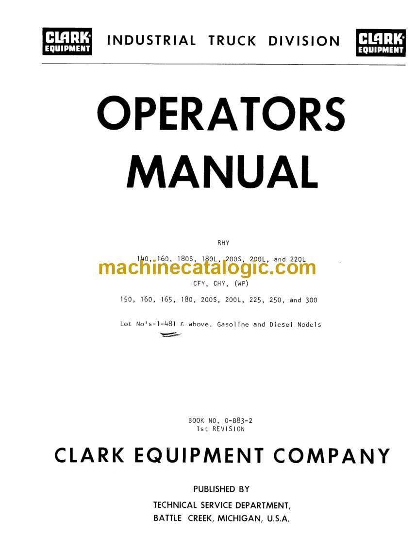 These Clark RHY, CFY, CHY, and WP series forklifts spend their lives loading trucks, feeding production lines, and shuttling pallets around warehouses and yards. This operators manual is what I keep handy to make sure the machine is started, driven, and shut down the way Clark intended, so we don’t cook transmissions or snap masts from bad habits. When an operator says “it jerks when I lift after startup,” I use this book to verify the correct startup sequence, check the control positions, and confirm the daily inspection points before chasing a mechanical fault.