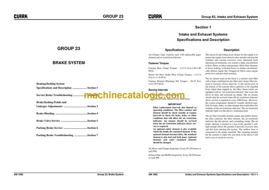 Section 1 Intake and Exhaust Systems Specifications and Description