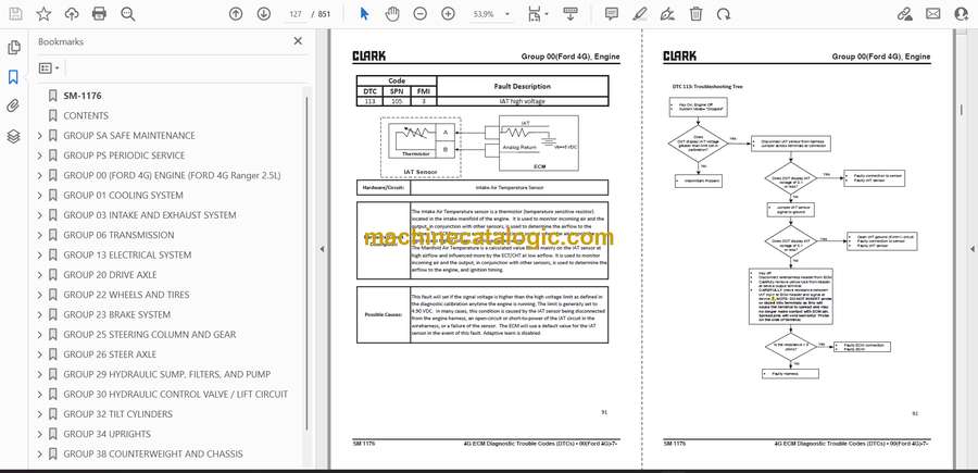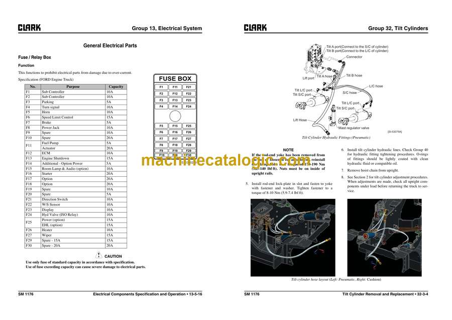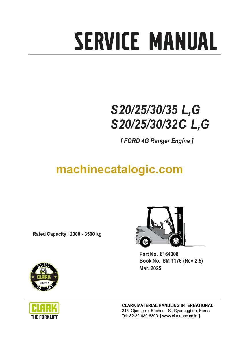 Clark S20, S25, S30, S35 L, G and S20, S25, S30, S32C L, G Ford 4G Ranger Engine Forklift Service Manual (SM1176)