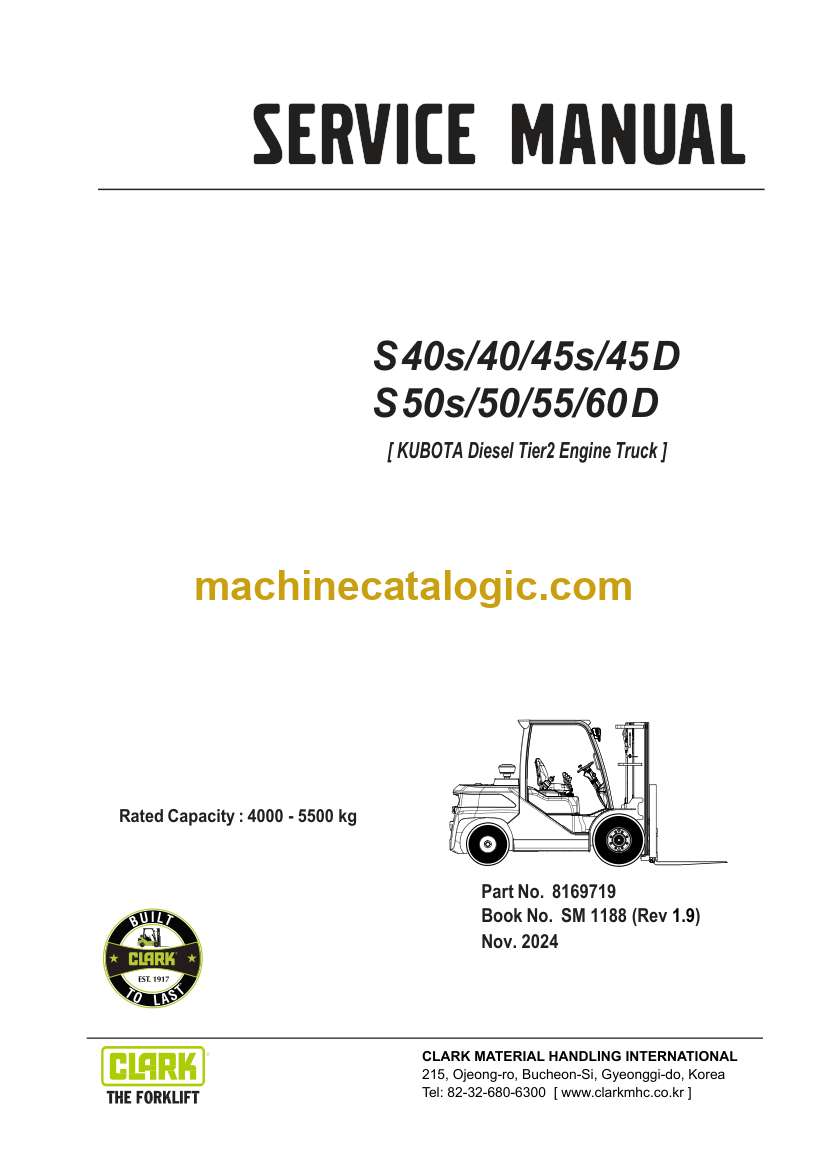 Model: S40s, S40, S45s, S45 D and S50s, S50, S55, S60 D Kubota Diesel Tier 2 Engine Truck Forklift