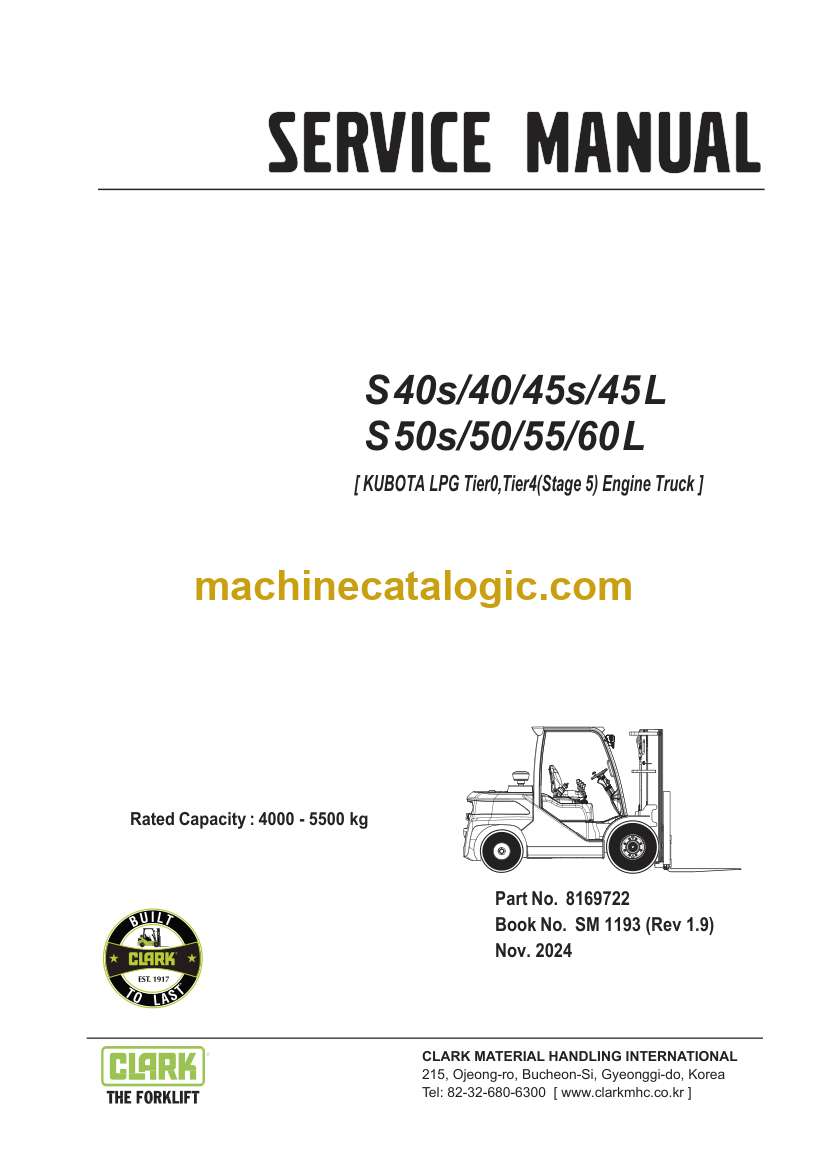 Model: S40s, S40, S45s, S45 L, S50s, S50, S55, S60 L KUBOTA LPG Tier0,Tier4-Stage 5 Engine Truck Forklift