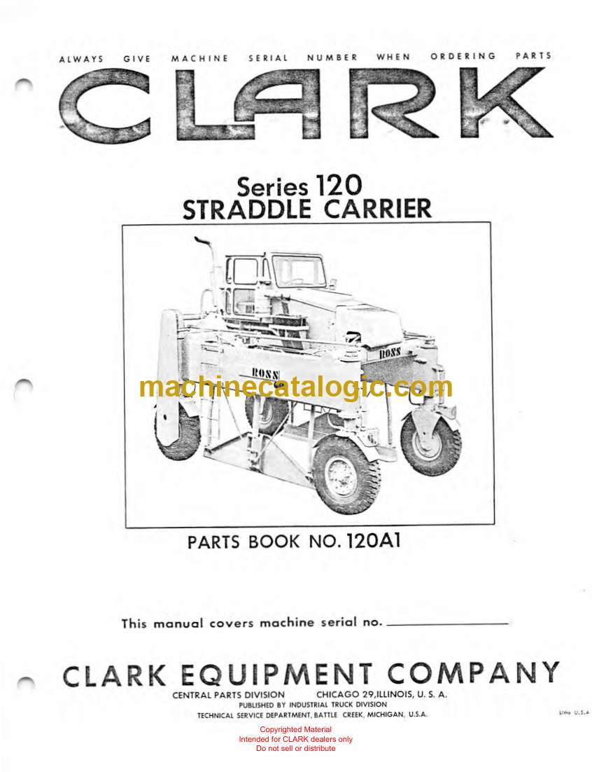 Clark Series 120 Straddle Carrier Parts Manual (X120A1)