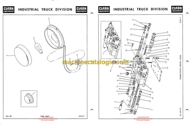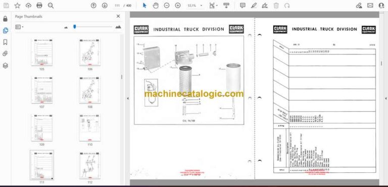 These Clark Series 512 van carriers spend their lives shuttling loaded containers around ports and yards, so when one is down you need to know exactly which part you’re looking at. This X141B parts manual helps you match what you see on the machine—linkages, brake components, air cleaners, hydrovac parts—to the correct Clark part numbers. For example, if the carrier has a spongy brake pedal, you can use this book to identify the exact hydrovac and line fittings you’re pulling off, so you don’t order the wrong valve or mismatched seal kit.
