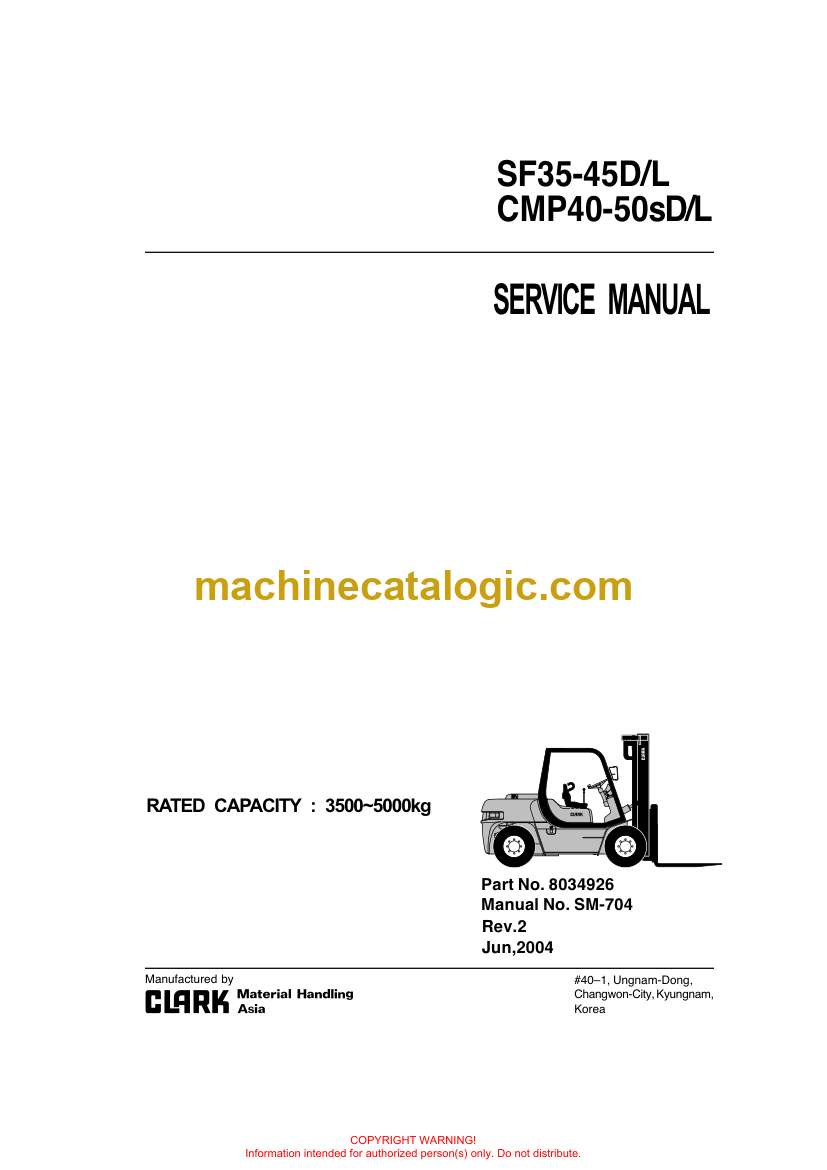 Clark SF35-45 D, L and CMP40-50s D, L Forklift Service Manual (SM704)
