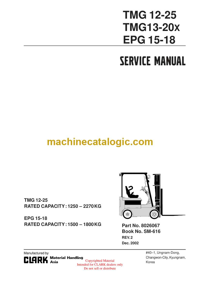 Clark TMG12-25, TMG13-20X, EPG15-18 Forklift Service Manual (SM616)