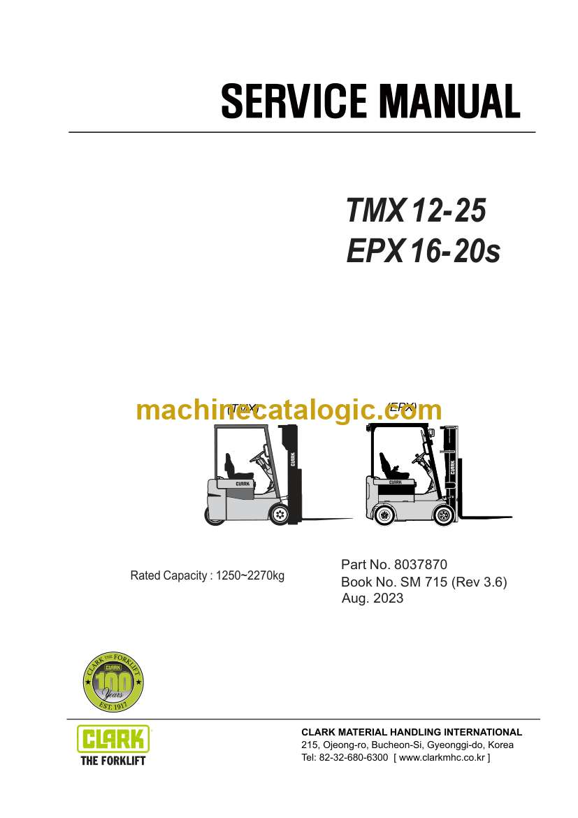 Clark TMX12-25, EPX16-20s Forklift Service Manual (SM715)