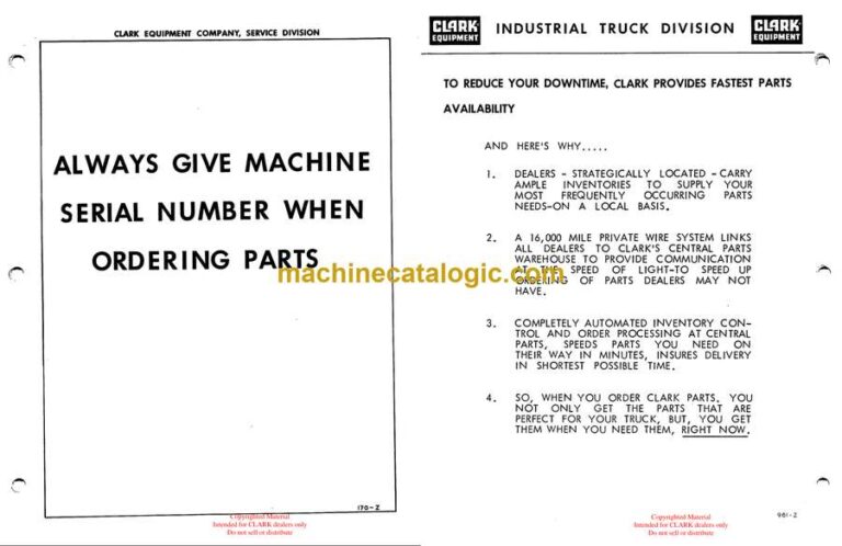 Clark Yardlift 100 Forklift Parts Manual (36A)