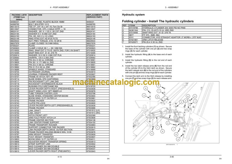 Folding cylinder – Install The hydraulic cylinders . . . . . . . . . . . . . . . . . . . . . . . . . . . . . . . . . 3-40
