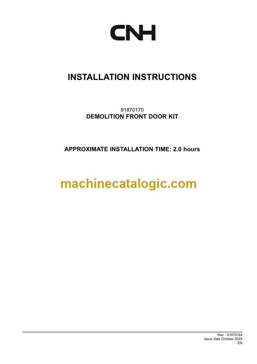 CNH DEMOLITION FRONT DOOR KIT Installation Instructions (91870164)
