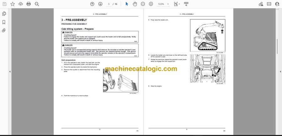 • Cab tilting system – Prepare