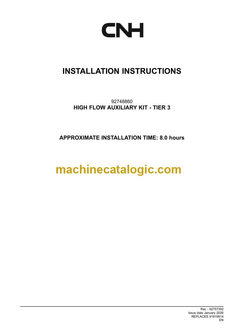 CNH HIGH FLOW AUXILIARY KIT TIER 3 Installation Instructions
