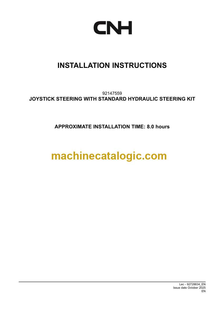 CNH JOYSTICK STEERING WITH STANDARD HYDRAULIC STEERING KIT Installation Instructions (92728834)