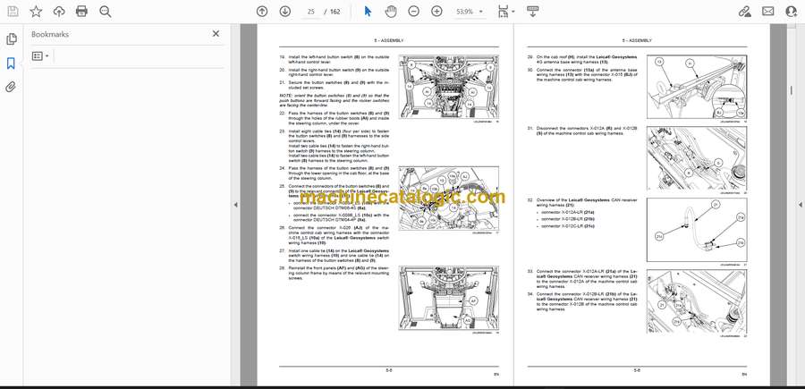 These machines usually live in dirt, dust, and weather—grading pads, cutting slopes, working around survey stakes and string lines. This manual walks you through how to install and align the CNH Leica mechanical kit so the guidance gear sits solid, tracks straight, and doesn’t shake loose halfway through a job. Say you’re hanging new brackets and sensors on the mast and cab: instead of guessing, you’ll trace each step, route the harnesses cleanly, and verify everything before you power it up.