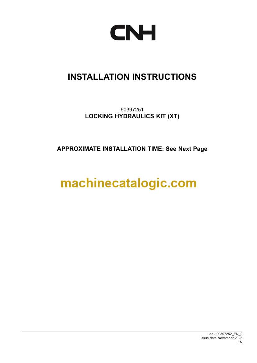CNH LOCKING HYDRAULICS KIT XT Installation Instructions (90397252)