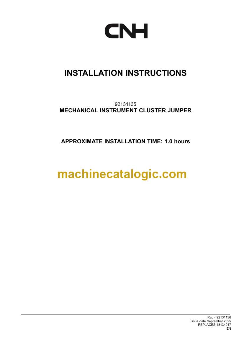 CNH MECHANICAL INSTRUMENT CLUSTER JUMPER Installation Instructions (92131136)