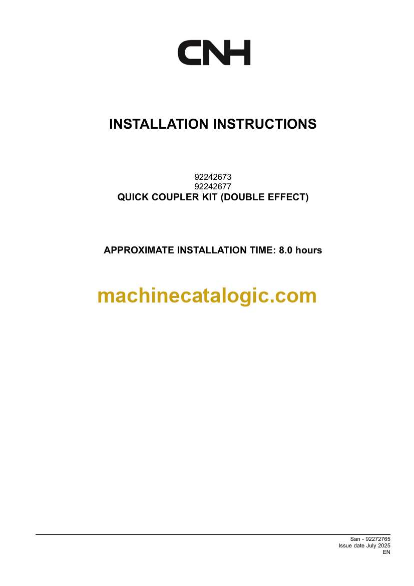CNH QUICK COUPLER KIT DOUBLE EFFECT Installation Instructions (92272765)