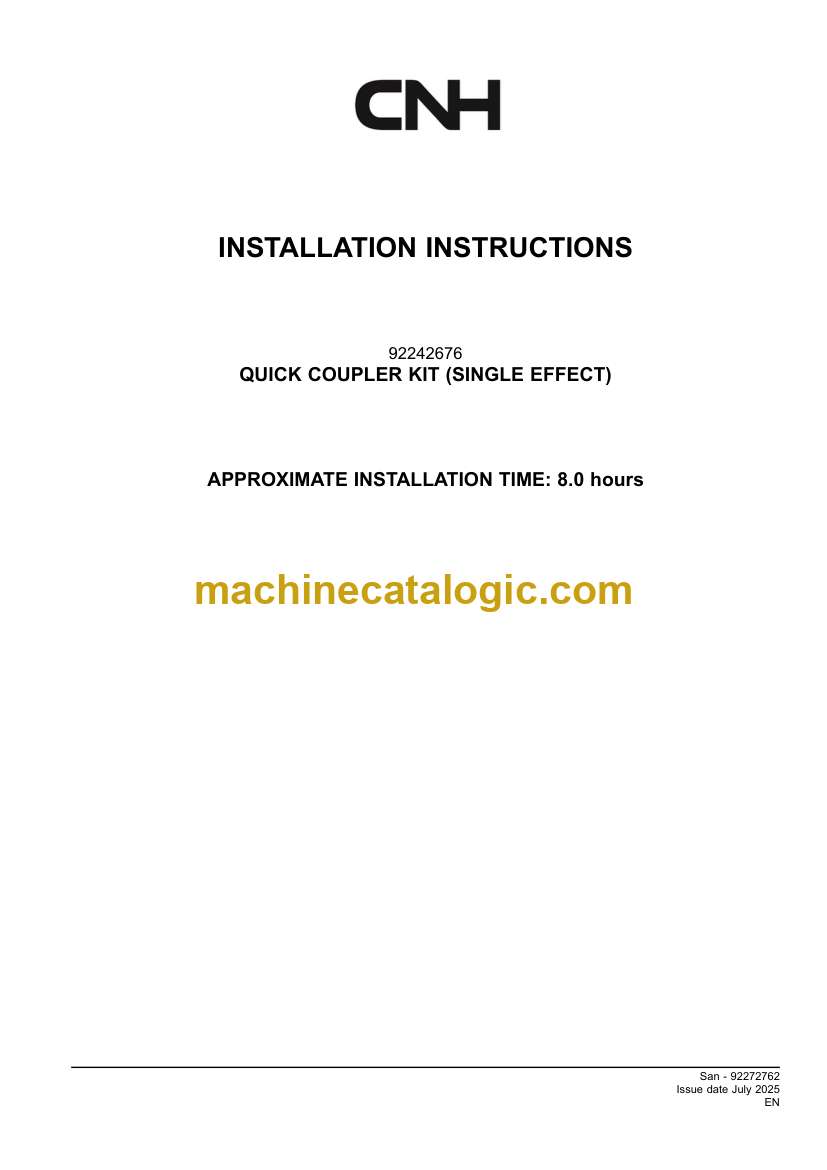 CNH QUICK COUPLER KIT SINGLE EFFECT Installation Instructions (92272762)