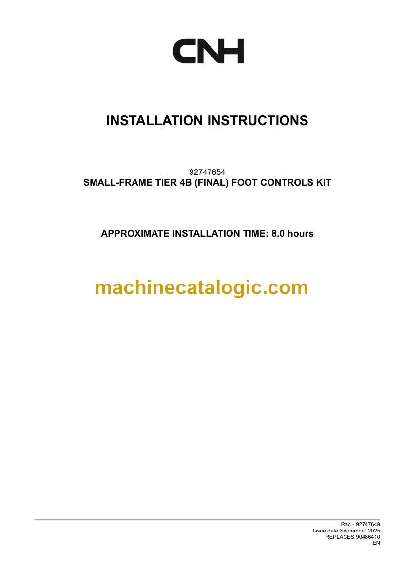 CNH SMALL-FRAME TIER 4B FINAL FOOT CONTROLS KIT Installation Instructions