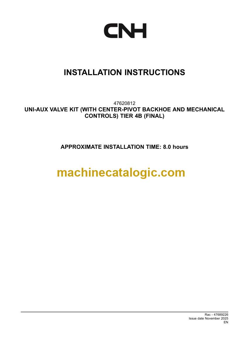 Model: UNI-AUX VALVE KIT WITH CENTER-PIVOT BACKHOE AND MECHANICAL CONTROLS TIER 4B FINAL