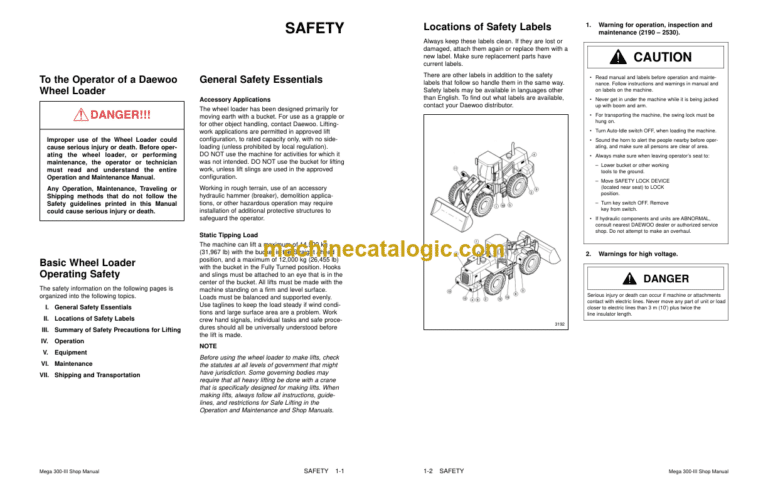 To the Operator of a Daewoo Wheel Loader 1-1
