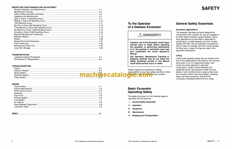 INSPECTION, MAINTENANCE AND ADJUSTMENT