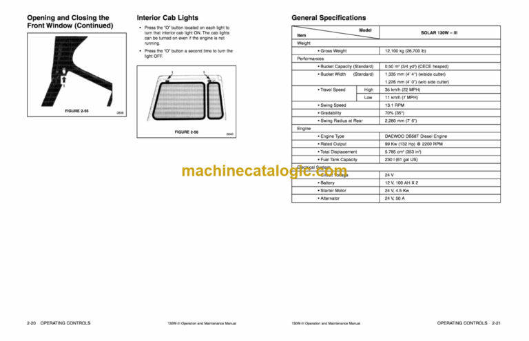 Daewoo Solar 130W-3 Wheeled Excavator Operation and Maintenance Manual (Serial Number 0001 thru 1378)