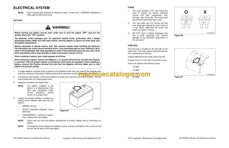 Daewoo Solar 170W-V Excavator Table of Contents:
