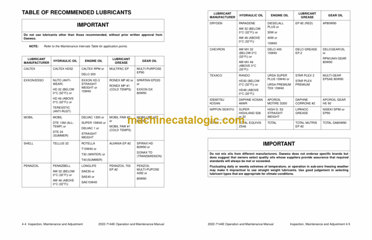 To the Operator of a Daewoo Excavator ……………………………………..1-1