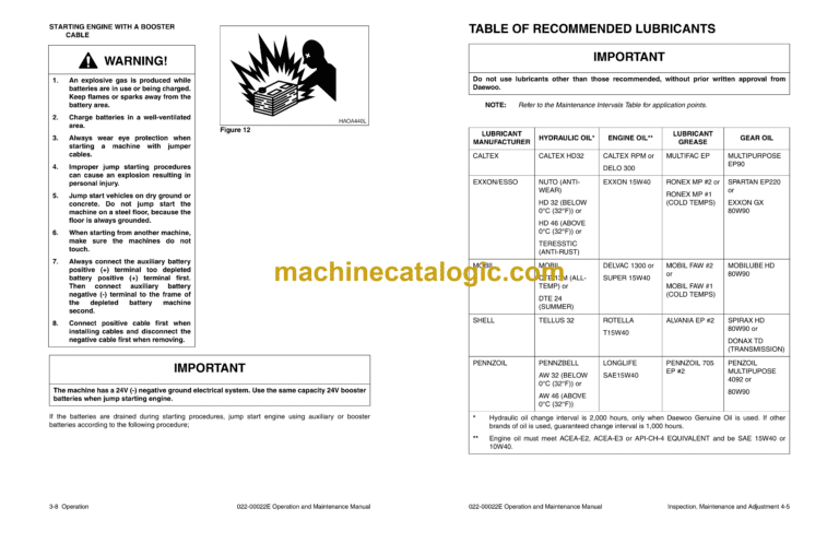 Daewoo Solar 470LC-V Excavator Operation and Maintenance Manual (Serial Number 1001 and Up)