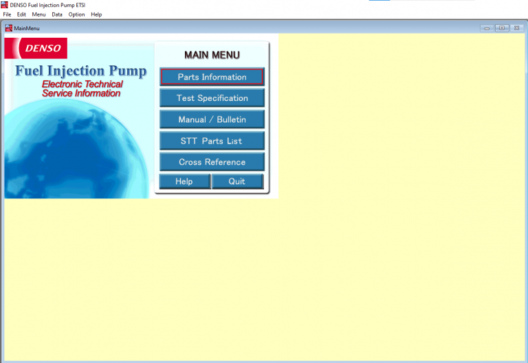 The DENSO Fuel Injection Pump ETSI system contains Parts Information, Test Specifications, Service Manual / Service Bulletins and the diesel fuel injection pump STT Parts List. It also contains a Cross Reference search function.