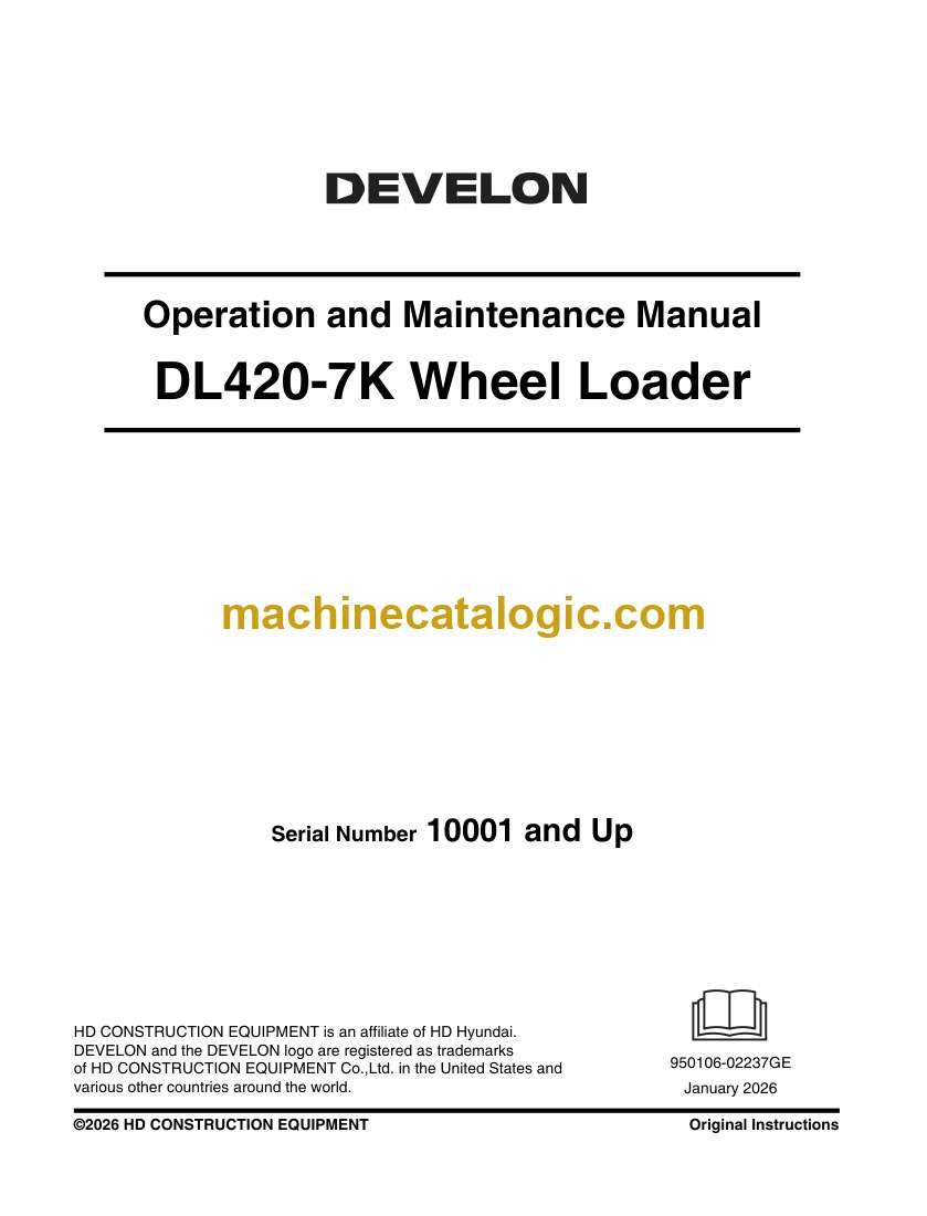 Develon DL420-7K Wheel Loader Operation and Maintenance Manual (950106-02237GE) (10001 and Up)