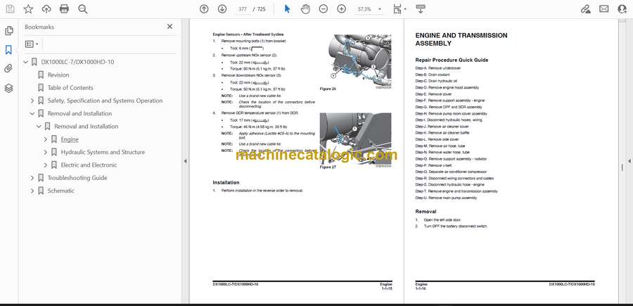 Develon DX1000HD-10 Hydraulic Excavator Shop Manual (950106-02428DE) (10001 and Up)