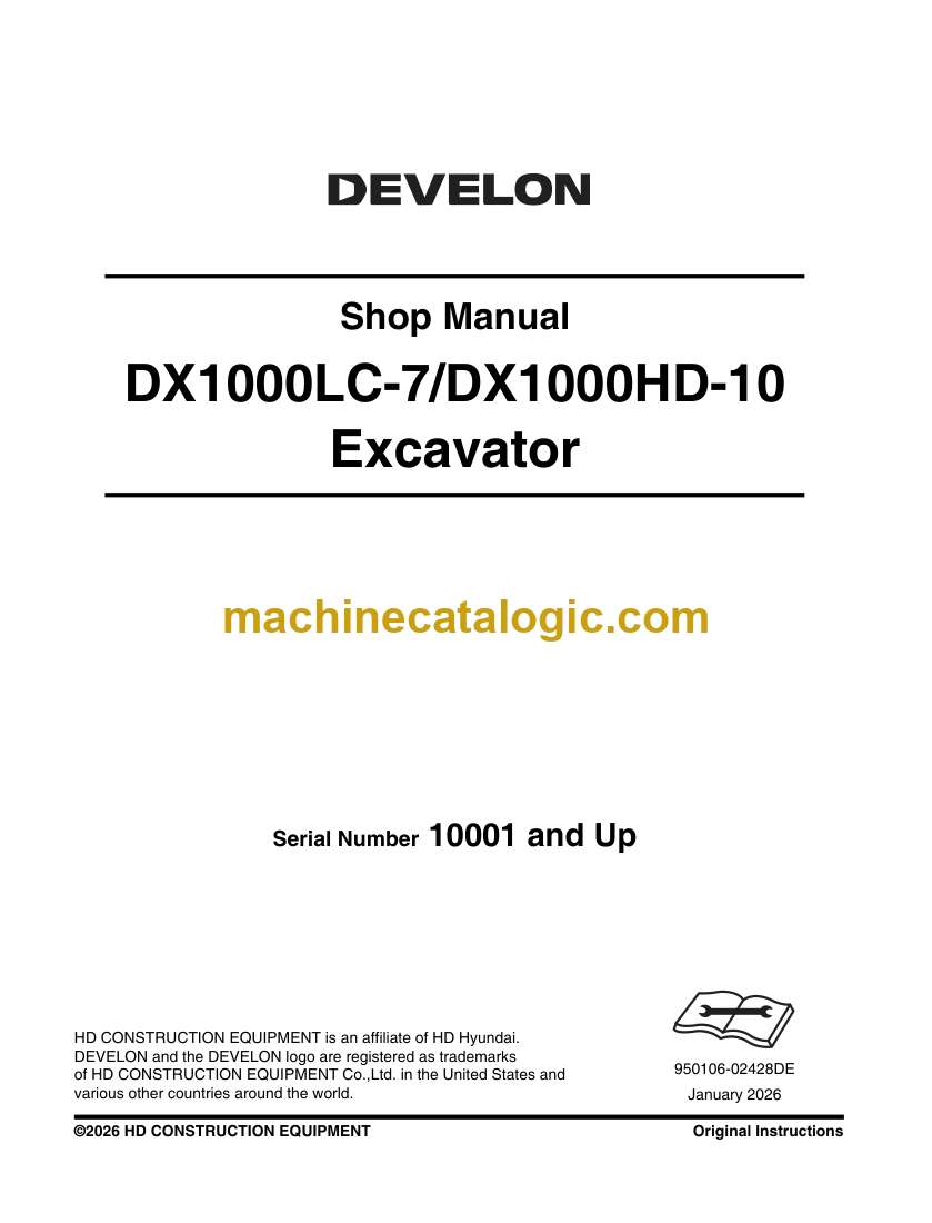 Develon DX1000LC-7 Crawler Excavator Shop Manual (950106-02428DE) (10001 and Up)