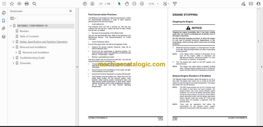 A DX1000LC-7 usually lives in hard digs—quarries, big earthmoving jobs, demolition—working long days in dust, mud, and rock. This shop manual helps you plan and carry out full tear-downs instead of guessing your way through a major repair. Say you’ve got swing noise and metal in the filters: with this, you can trace the fault, strip the swing gearbox, inspect every bearing and gear, then reassemble and torque things in the right sequence so it doesn’t fail again.