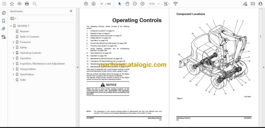 This DX100W-7 usually lives in tight city jobs, road work, utility trenches—hard ground, tight schedules, lots of starts and stops. This manual helps you set a maintenance rhythm so the machine stays predictable: what to trace every morning, what to check each week, what to service before the busy season so it doesn’t quit on a night shift. Picture this: you’re lining up a week of street cuts, you’ve got traffic control booked, and instead of guessing, you follow the book to inspect, bleed, and test what needs it so the excavator just shows up and works.
