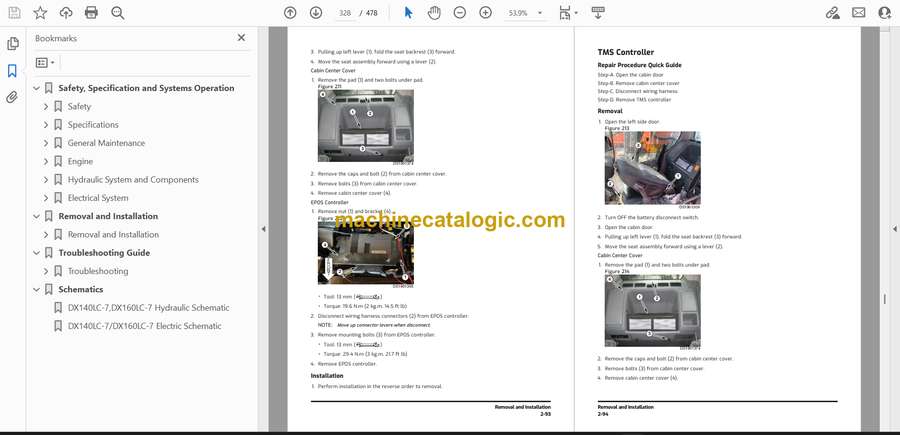 Out on sites, this DX140LC-7 is usually trenching, loading trucks, or working around utilities in mud, dust, and cold starts. This shop manual is what you’d use when you’re past quick fixes and you’re ready to strip systems down, inspect, and build them back so they’ll actually hold up. Say you’ve got swing noise and metal in the oil: this is the book you’d follow to plan the teardown, trace the fault, inspect the bearings, then reassemble and torque everything in the right sequence so it doesn’t come back on a hook.
