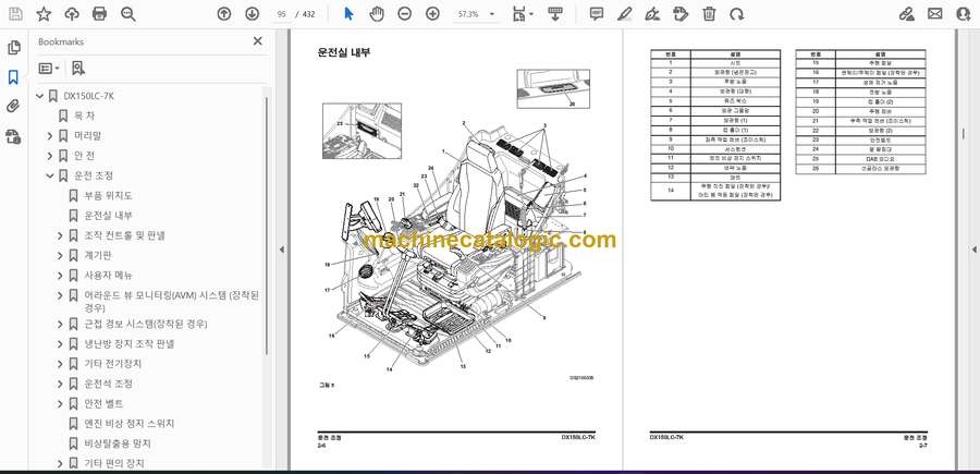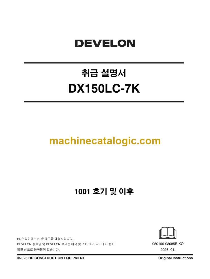 Develon DX150LC-7K Excavator Operation and Maintenance Manual – Korean Language (한국어) (950106-03085B-KO)